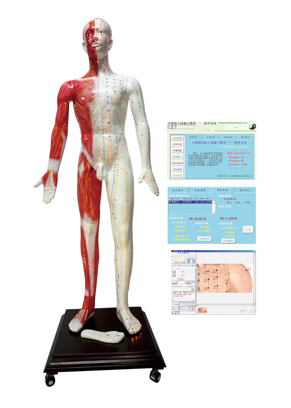 多媒體人體針灸穴位發(fā)光模型... 該系統(tǒng)融計(jì)算機(jī)技術(shù)、電子控制技術(shù)、多媒體技術(shù)、腧穴理論于一體;聲音、屏幕、人體模型同步控制筋絡(luò)腧穴的信息;顯示十二經(jīng)脈循環(huán)流注,經(jīng)脈絡(luò)屬表理對(duì)經(jīng)關(guān)系,特定穴的分布;加之屏幕表層、淺層、深層穴位解剖圖的配合,常見(jiàn)病的辯施治,隨證選穴的查詢及處理輸出,使學(xué)員對(duì)人體經(jīng)絡(luò)腧穴信息有更全方位的了解,更有利于加深印象與理解掌握;同時(shí),亦可用于臨床與科研參考。